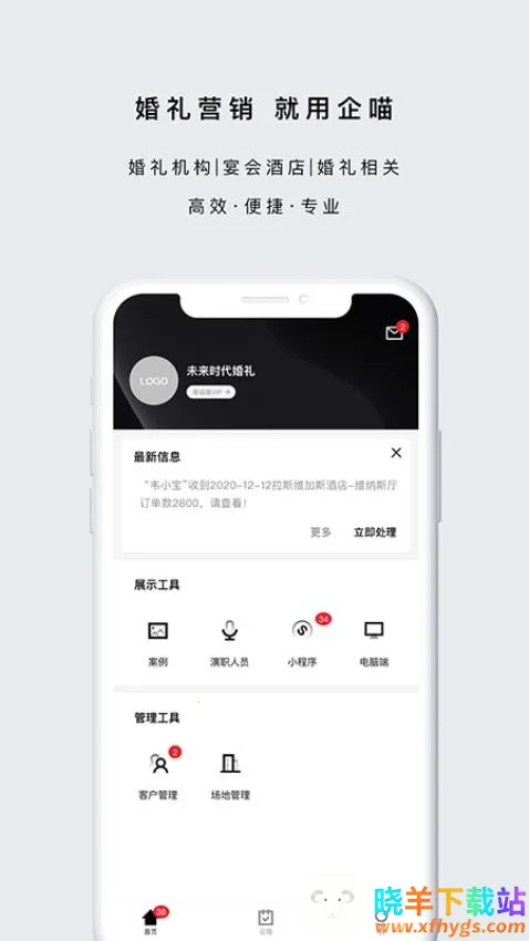 企喵是专注婚庆行业的管理平台,有完善服务功能,集多种实用功能于一体,能解决管理营销难题。有 APP、PC 端、微信小程序,多平台交互,提升婚企效率与签单率,全国多地 3000 公司注册使用。