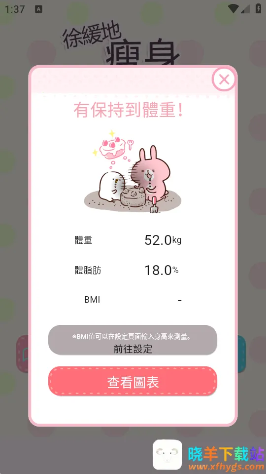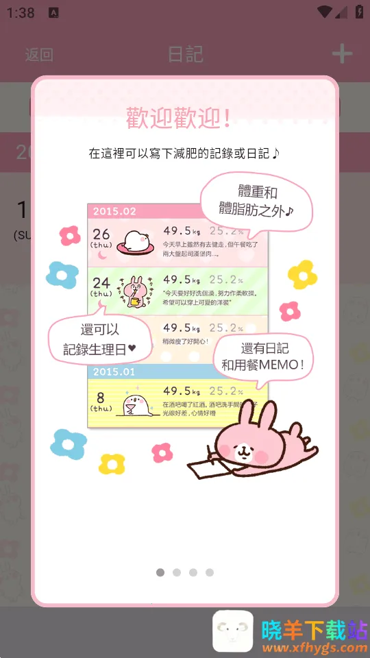 4. 有显示体重变化的可爱图形,还有非常完整的日志功能,可记录体重、体脂及日常所发生之事。