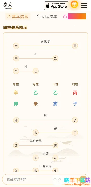 5、往下滑还可以看到四柱关系图等内容。