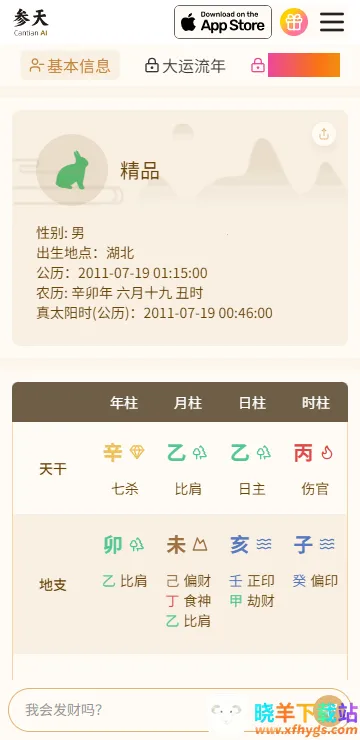 想知道参天AI和deepseek算命哪个更厉害准确?咱来好好说说。参天AI是一款个性化八字命理软件。它能通过分析八字与个人档案,建立专属模型,分析性格特质、习惯倾向和生活趋势。从职业规划到婚姻运势,啥都能给你分析得明明白白。使用也简单,先在本站下载安装,进不去就搭配科学上网,然后输入基本信息,选好出生时间精确到分,软件自动生成分析,往下滑还有四柱关系图等。它有多个风格各异的智能体,能多角度提供理解与支持。还会记录与你的互动,越聊越懂你。而且专业大师难寻,它就能提供专属知识库、智能报告、趋势解读,还有知识记忆和多语言支持,能解决你在命理方面的不少疑惑,带来便利。至于和deepseek谁更厉害准确,就看你自己用了之后的感受啦。