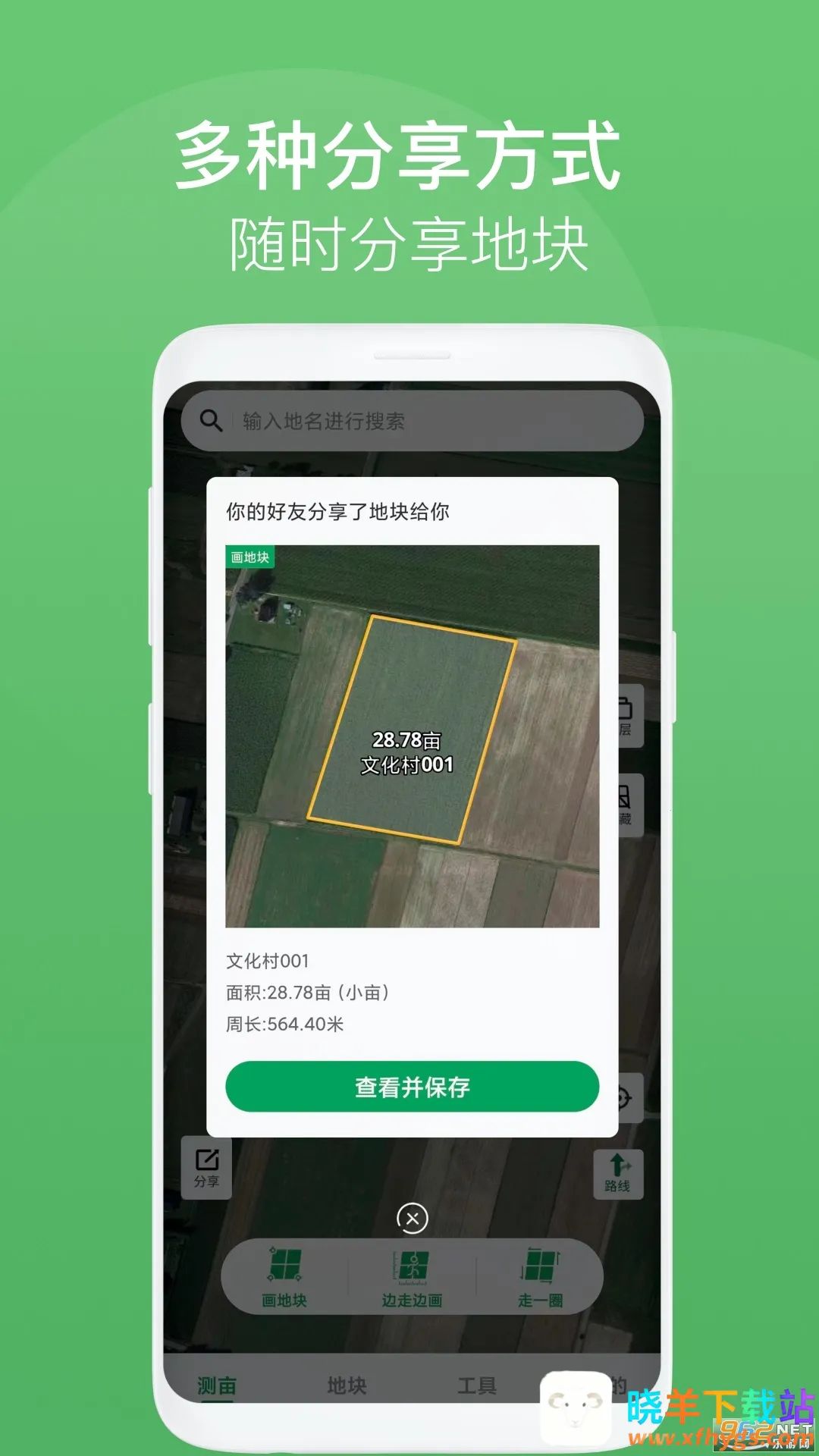 3. 测量方式灵活:支持画地测量与绕地行走两种核心方式,可在家用手指圈出田块快速估算,也可携带手机沿田埂步行自动采集边界,大幅节省人力与时间成本。
