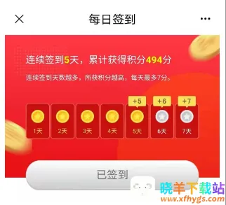 每日签到:打开APP即自动完成签到,首日得1分,连续签到每日递增1分,最高达7分;中断则重置计数。全年无间断签到,最高可累计2534积分。