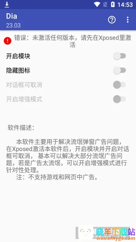 Dia是一款大神打造的强制关闭各种对话框的软件,需搭载在xposed框架或太极app中。能关闭强制更新、小广告对话框,使用简单,开启模块和增强模式即可自动检测关闭,还你干净手机使用体验。