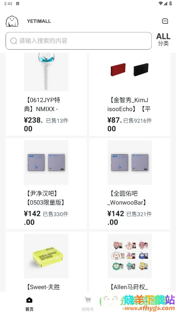 Yetimall官方网站首页能满足粉丝一站式购买明星周边的需求。这是个为海内外粉丝打造的专辑购物平台,提供众多偶像的专辑、周边、杂志、写真、签售会等在线选购信息及交易服务。