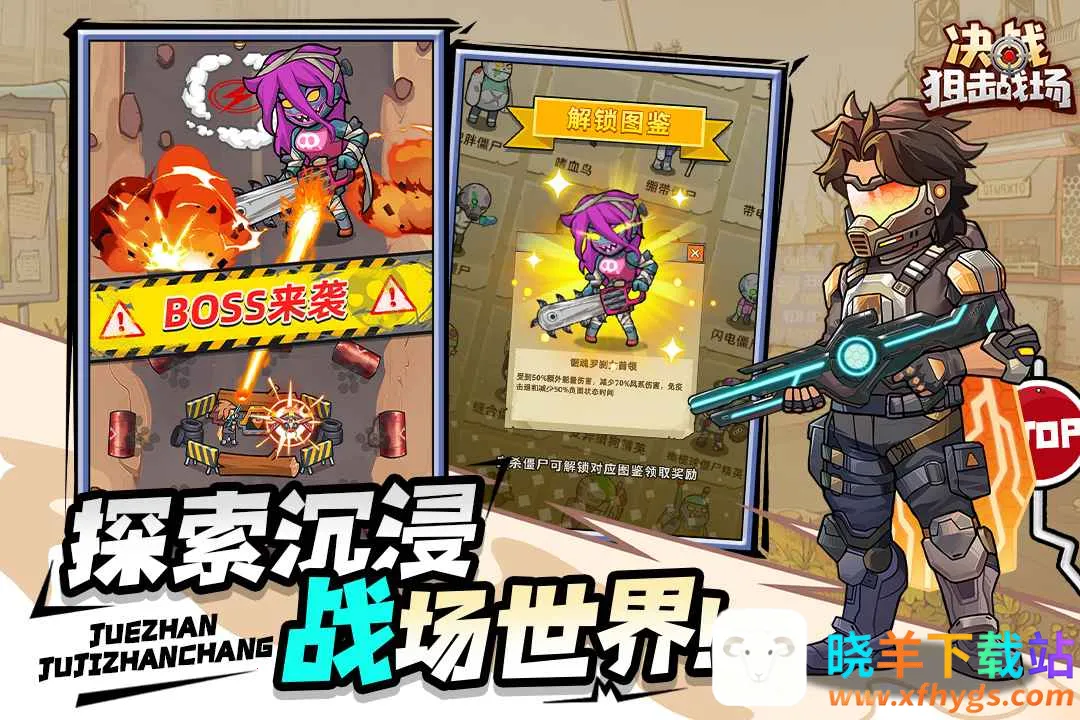 决战狙击战场是一款令人热血沸腾的射击手游。它以末日为背景,玩家置身丧尸危机的废土世界,作为人类拯救者带领幸存者构筑庇护所并战斗。游戏融合多种元素,玩法丰富。关卡设计多样,武器装备众多,还有多种角色可供选择养成。玩家能借助无人机辅助作战,组合技能应对尸潮。其具有现代化技术、多样化角色、Roguelike元素等亮点。操作上,点按移动与自动射击结合,新手易上手。养成不累肝,放置收益、离线奖励与一键扫荡并存。构筑很自由,技能增益、流派词条与枪械改装可叠加。美术风格鲜活,Q萌人物与末日场景碰撞,打击音效与震屏特效强化临场感。总之,是一款值得下载体验的佳作。