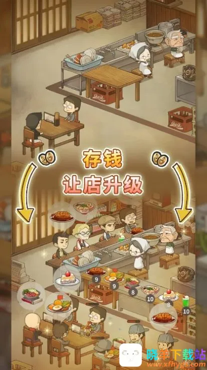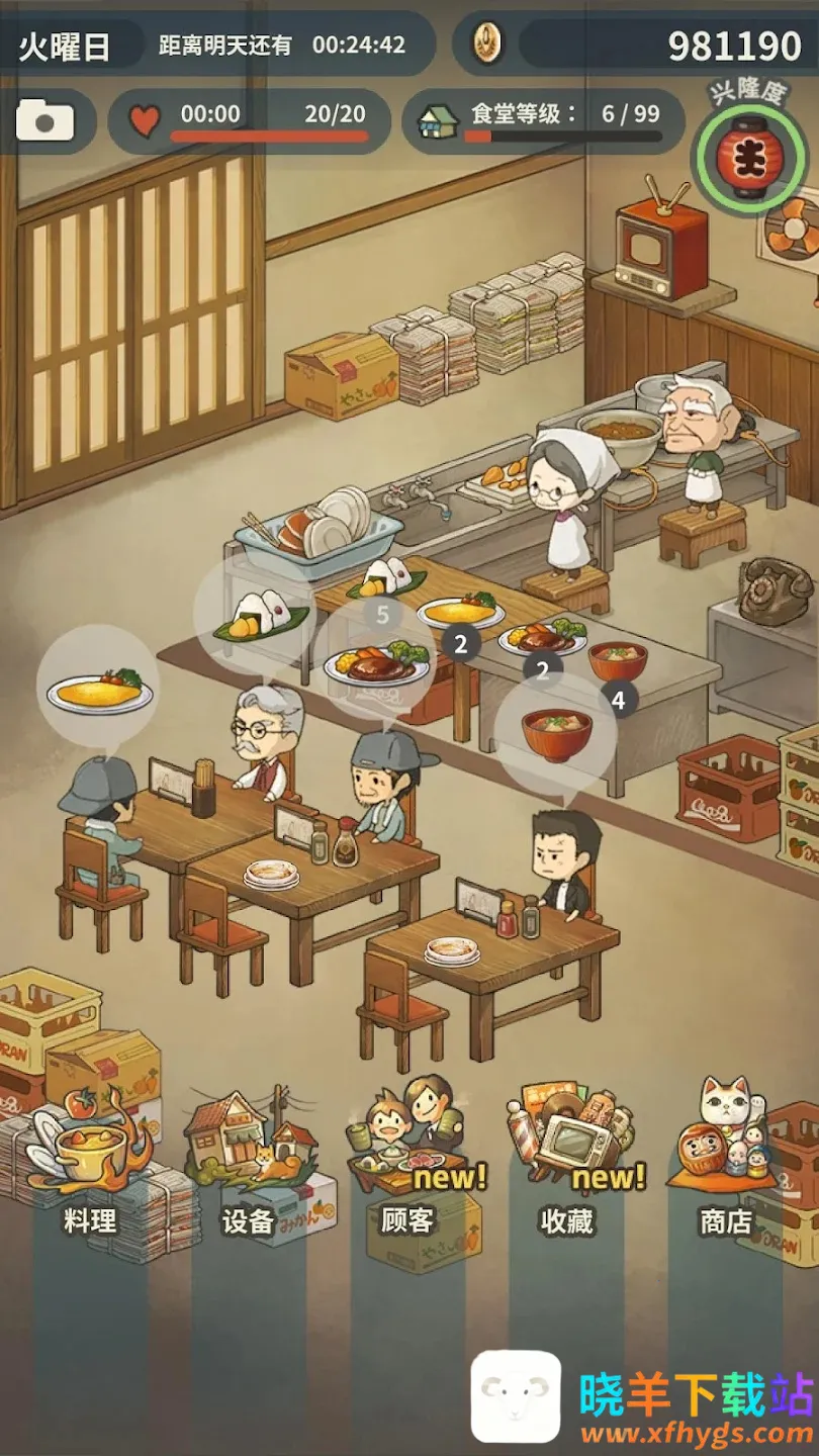 3. 采用昭和系列经典的卡通怀旧画风,将富有年代感的街边食堂细致呈现,带来温馨治愈的游戏体验。