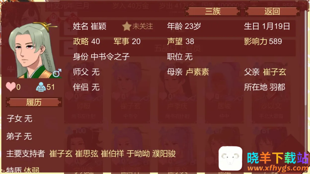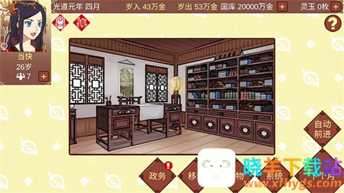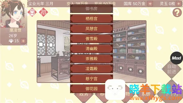 6. **养成玩法**:玩家需要管理后宫,平衡朝堂势力,将自己的皇朝代代相传。通过科举、任命官员等方式,提升自己的实力。