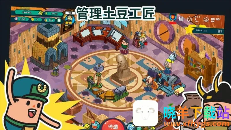 看土豆们的武器工坊是卡通画风经营养成游,玩家扮演继承工坊的小土豆铁匠,锻造武器卖探险英雄换金币,可改装工坊。武器属性多样,能调时间速度掌控节奏,剧情搞笑,玩法丰富,还有员工管理等特色。