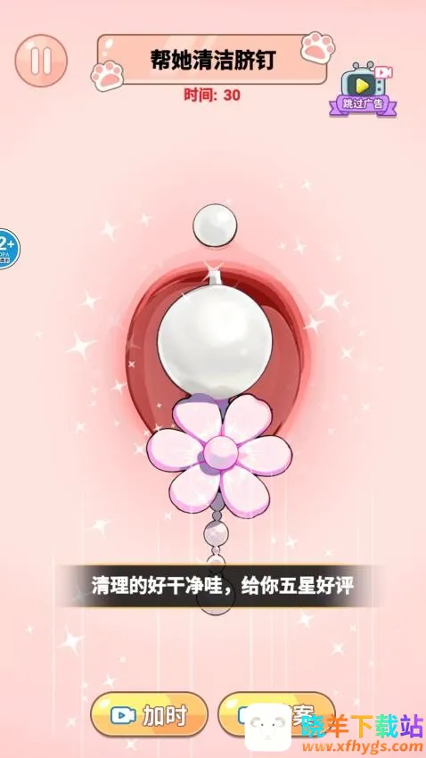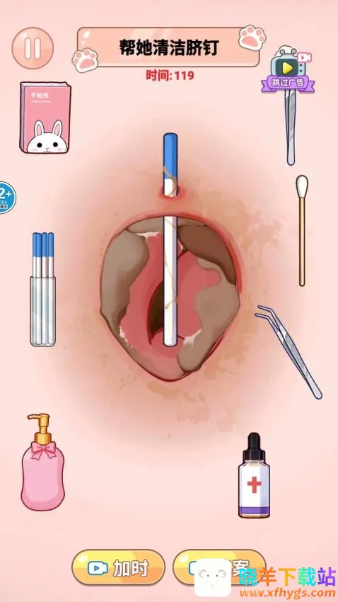 1、帮她清洁脐钉,直接在游戏界面显示很多攻击,手指拖动工具到指定的区域清理