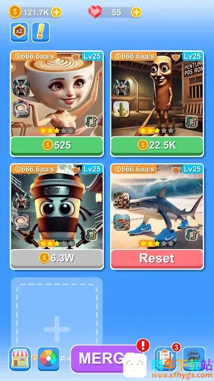 《生物融合》是一款休闲放置类卡牌游戏,玩家可将两种随机动物融合创造新物种,并升级这些生物以获得收益和探索独特混合生物,目标是打造终极融合杰作并扩张自己的帝国。