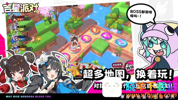 吉星派对是最多支持4人联机的派对游戏,能选喜欢的角色,用技能和手牌攻击朋友。有15种地块效果、丰富手牌,战斗是一对一骰子游戏,还有各种事件、中立生物及小怪兽,玩法新颖,乐趣十足。