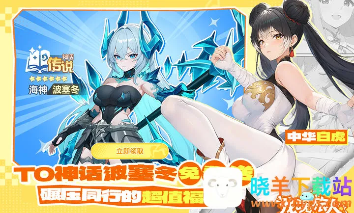 2. 福利满满,不氪金也能玩得畅快。T0 白虎上线领,SSR 幻灵每周必得,限定 UP 池 100 不歪,50 抽保底,还有大量钻石雨降临,神话幻灵波塞冬直接领,梅琳娜皮肤免费送,六大战神免费送。