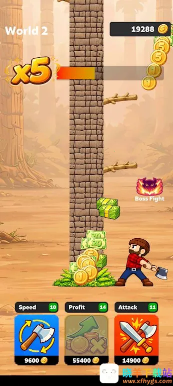 3. 首领战与新区域:随时挑战强大首领,30秒内击败可解锁新区域,木材价值更高,区域越高收益越丰厚。