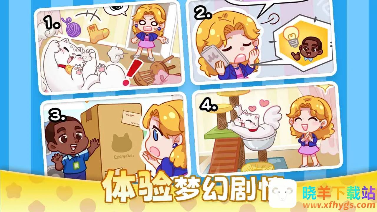 2. 自由DIY装潢:数千种精致DIY装潢、数十个房间,以及角色服饰、可爱宠物等,均可解锁,能随心打造专属梦幻庄园。