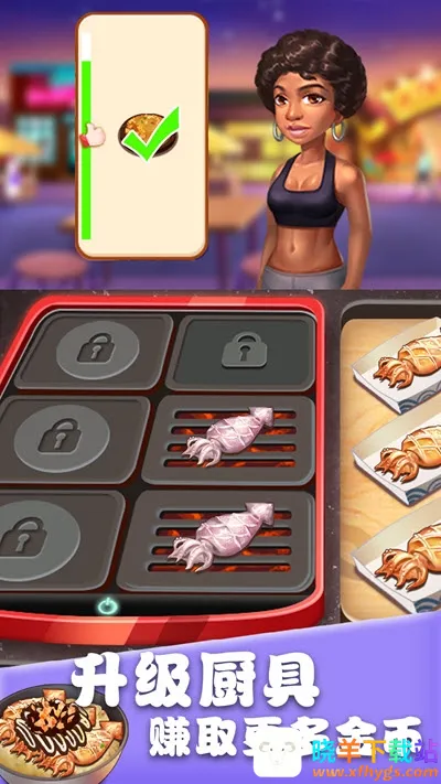 2、离线畅玩无压力,随时随地享受烹饪乐趣。几分钟就能完成一关,不占用正常生活时间,让你在闲暇时光尽情经营美食街。