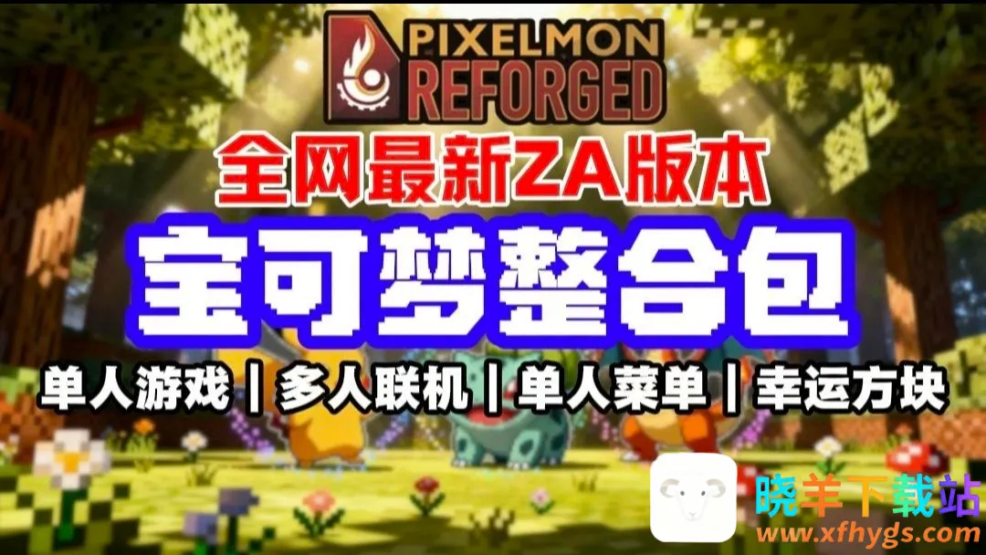 《我的世界神奇宝贝ZA宝可梦》是结合《我的世界》与宝可梦的创意模组。新增野外精灵刷新、DLC精灵掉落物等。幸运方块更新,还有新功能与修复,加入动漫角色皮肤,为玩家带来丰富有趣的宝可梦冒险体验。
