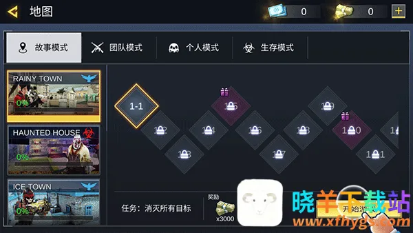 2、玩家在游戏中可以选择自己喜欢的模式进行畅玩,其中提供了故事、团队、个人、生存模式这四种玩法模式可以体验;