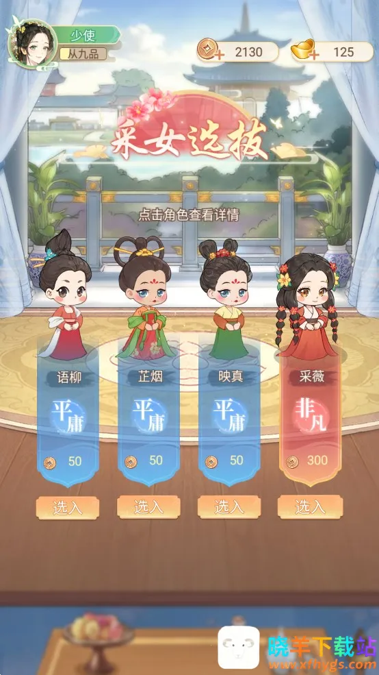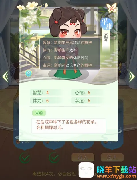 2、玩家可以点击采女查看信息来选择好采女。
