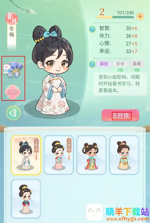 1、完成采女选拔后就会变为宫女,玩家在宫女页面可以查看其信息,还有专属故事以及立绘可以查看。