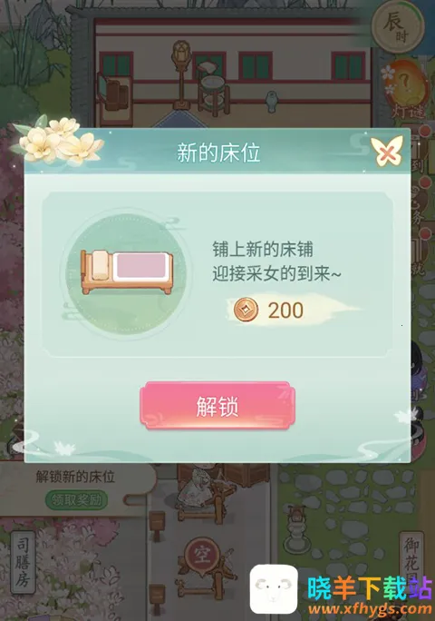 玩家点击床铺区域加号就可以新建一个床铺,迎接采女的到来。