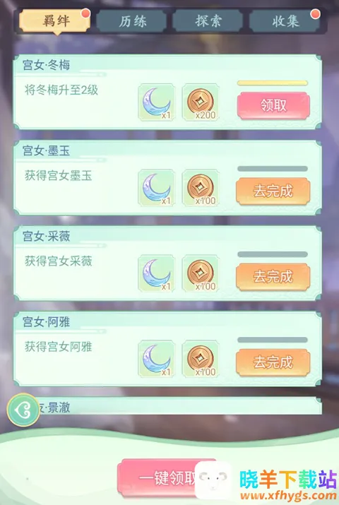 玩家通过选拔、升级宫女、解锁故事羁绊等可以解锁羁绊成就,领取丰富成就奖励。