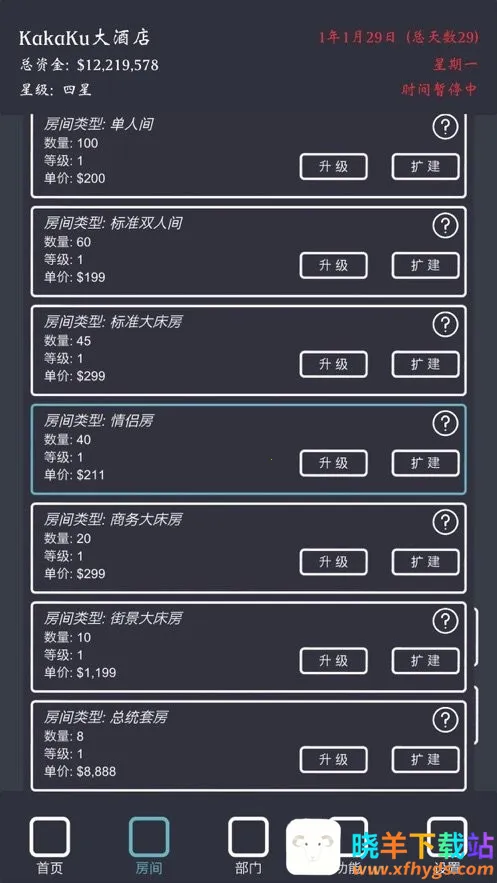 模拟酒店无限金币手机版是一款文字题材模拟经营游戏。玩家扮演酒店老板,通过招募员工、制定策略等壮大酒店。有丰富玩法,可升级装饰、参与评级,还有存档功能,能体验从一星到五星酒店的经营乐趣。