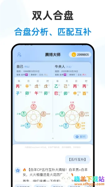 赛博大师是一款颇具特色的运势测算软件。它内置完善的 AI 测算系统,输入名称和生辰八字就能迅速推送财运、爱情等各类信息。其 mbti 性格测试系统,作答后能详细展示个人性格分析。软件功能丰富,生活疑问可咨询 AI 大师,各项测算免费,内容支持在线分享。亮点也很突出,运行需网络,操控界面清爽无广告,还自动加密用户信息。特色方面,能帮用户制定人生目标,培养人生价值观,记录生活点滴。小编简评中提到,历史作答信息可详细展示,还会根据性格推荐有趣的生辰运势,方便用户出门前查看,整体来说是一款值得尝试的运势测算软件。