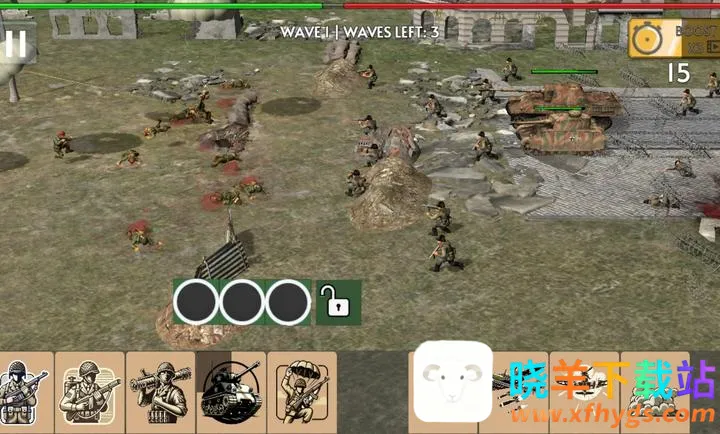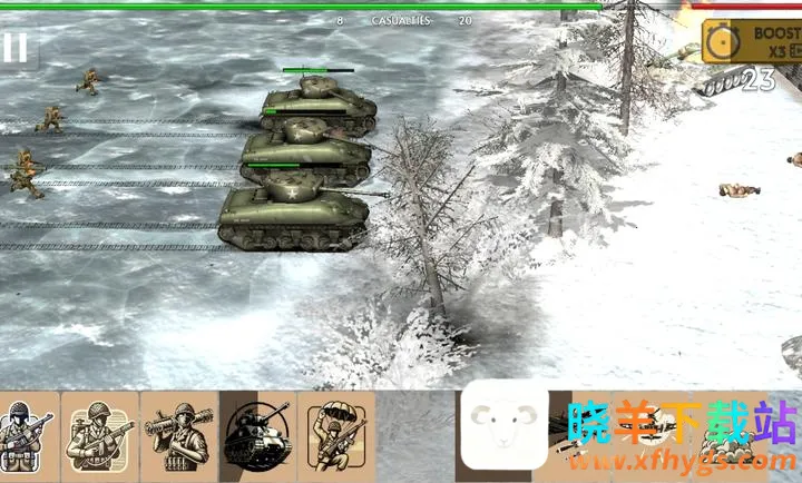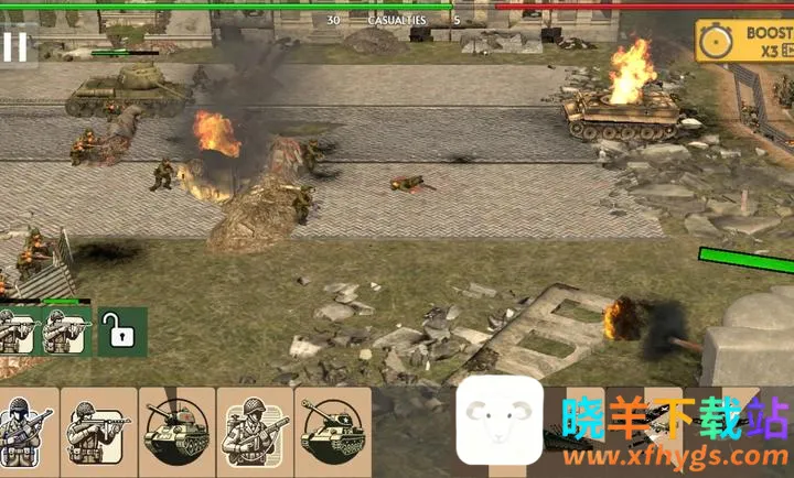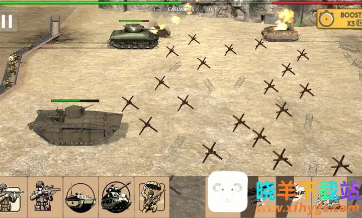 2. 可部署步兵、机枪手和坦克等多种部队,灵活制定进攻计划,守住关键阵地。