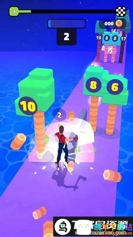 2. 关卡设计丰富多样,每一关都有不同挑战与乐趣,持续闯关能带来愉快过程。你要与对手竞速,砍倒树木,搭建桥梁,抢先抵达终点。