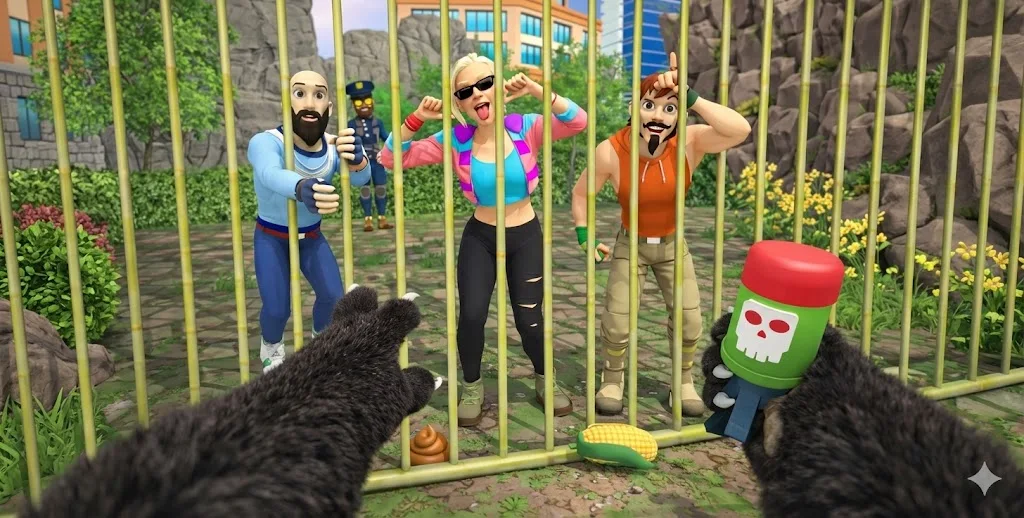 1. 丰富场景探索:扮演调皮熊猫,置身色彩斑斓的开放世界公园,从竹林到游乐场,处处充满惊喜与搞笑可能,可自由移动利用环境设计恶作剧。