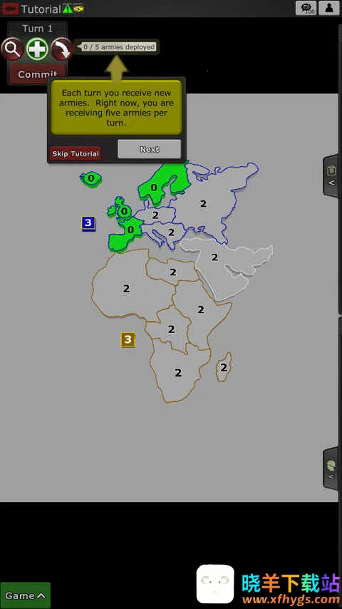 4、每一个回合中你都会收到新的军队,现在,你接收到了五支军队。
