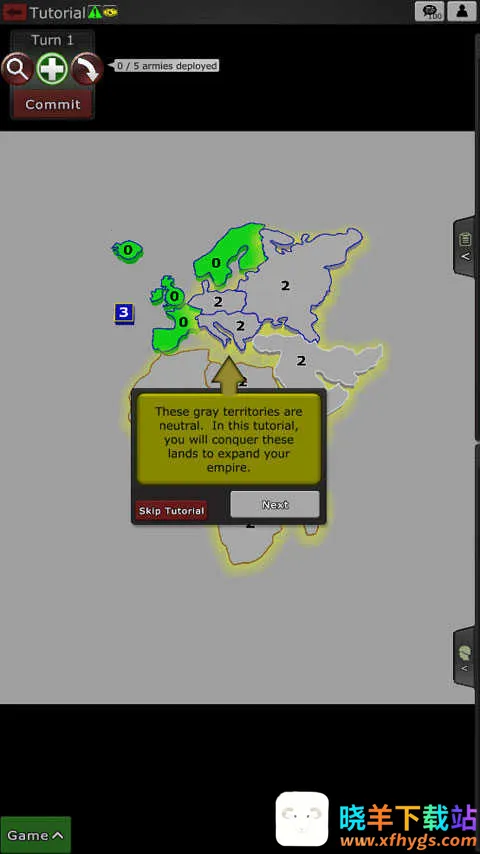 3、而周围灰色地带这表示中立,你需要做的就是征服这些土地,扩大你的帝国。