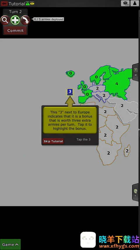 12、欧洲旁边的这个“3”表示它是一个奖励,每回合值3个额外的军队。点击它获得突出奖金。