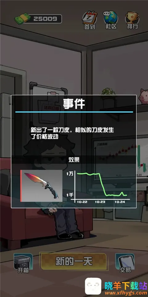 我在CS卖饰品是款模拟经营策略游戏。玩家一觉回到饰品暴跌前几小时,要紧急止损。游戏中需偿还债务赚资金,核心玩法低买高卖,还有欧皇开箱机制,助玩家体验从负债到巅峰的逆袭之旅。