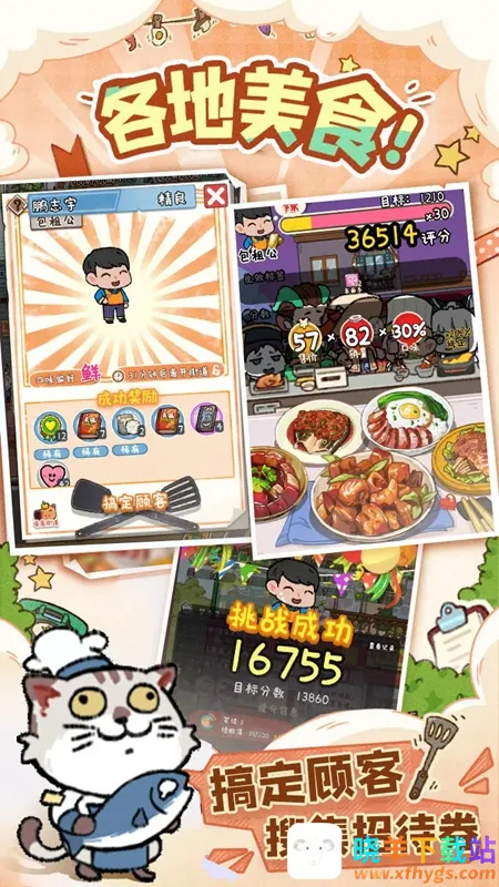 3. 可解锁不同美食种类,体验丰富游戏内容,更有各种店铺设备等待解锁,增加游戏趣味性。