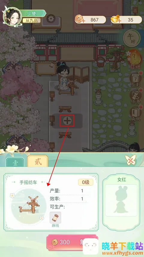 玩家点击床铺区域加号就可以新建一个床铺,迎接采女的到来。