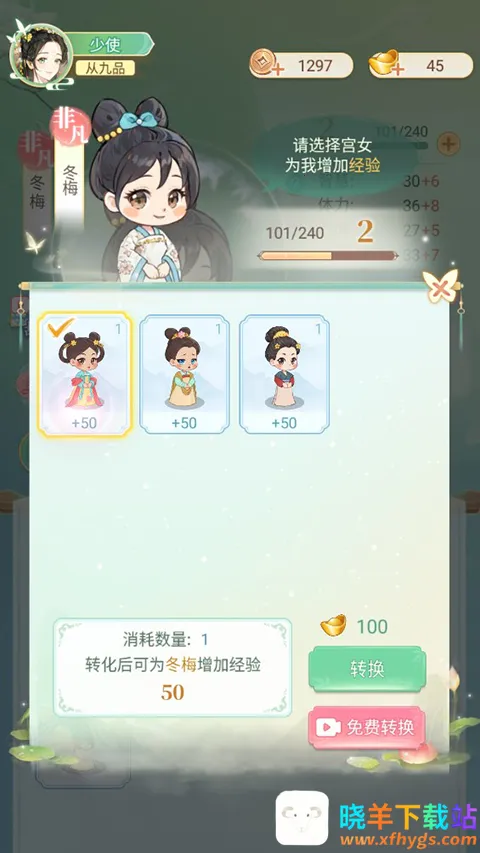 2、宫女还可以进行升级,消耗低级宫女进行转换升级。