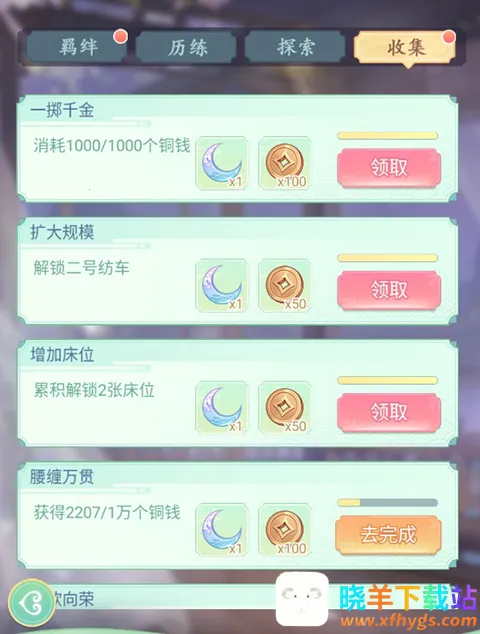 通过解锁建筑、获取即消耗铜钱等即可解锁成就。