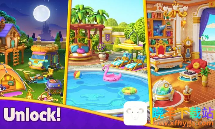 3. 岛屿城堡建设:解锁并翻新一座神奇的岛屿城堡,拥有美丽的设计和迷人的花园,让玩家打造梦想中的岛屿天堂。