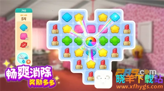3. 多样玩法体验:有经典三消玩法,通过消除获取金币购买服装和化妆道具。还有丰富有趣的玩法选择,如自定义装扮、改造个性化人物,以及展示室内设计才能,解锁不同风格居住空间。