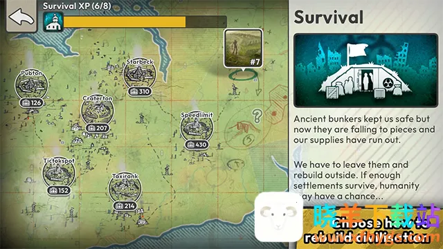 1. 独特融合玩法:将战略模拟、生存城市建设和迷你4X元素独特融合,带来全新游戏体验。在死灵病毒肆虐后的世界,建造定居点、探索、搜寻资源并扩张,塑造后末日社会。