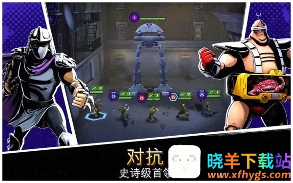 忍者神龟传奇是一款独具特色的忍者神龟格斗游戏。它融合剧情冒险与格斗竞技玩法,高度还原动漫经典场景,设有丰富战斗副本及特殊道具武器。玩家能操控喜爱的忍者神龟,掌握独门格斗技巧,与伙伴组队闯关。这里有多达30多个可升级训练的角色,能组成强大队伍。不仅如此,忍者神龟动漫漫画中的角色也会登场。游戏还不定期更新,提供新内容与福利。凭借正版IP授权,支持多人联机,让玩家能与好友一同冒险,感受热血格斗与童年回忆的完美结合,开启守卫和平的热血征程。