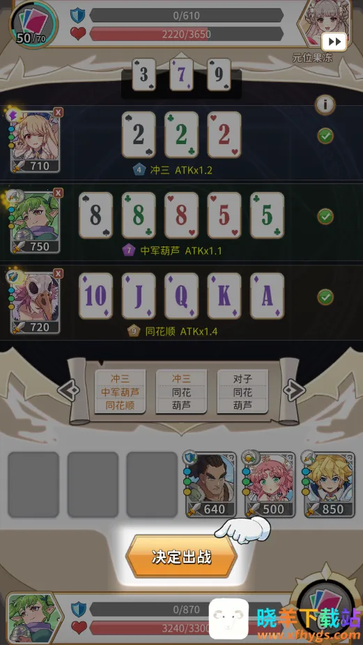 2、牌型准备好了之后就可以安排相关的英雄了。