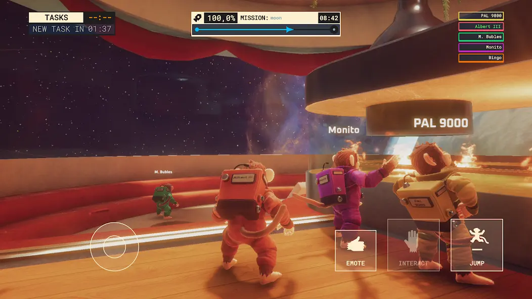 猩空大冒险(太空猴子号游戏)特色十足。它支持18人合作冒险,线上联机或离线单人都能畅玩。有40款刺激搞怪的小游戏,带来无尽欢乐。玩家可与勇敢调皮的太空猴子一同执行任务,处理突发状况。还能升级飞船舱室,解锁并升级8大特色舱室,打造专属太空船。更有挑战6种难度模式含无限模式,让玩家探索神秘深空。在这里,协力共进很关键,不然可能一起翻船,尽享混乱与欢笑中冲向群星的乐趣。