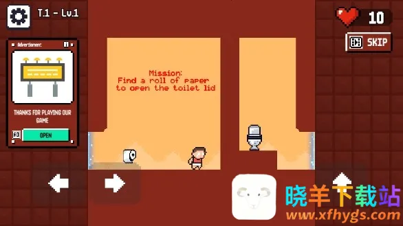 在这款游戏中,玩家扮演快憋不住的像素小人,要突破重重障碍,在规定时间内到达马桶,途中还得拿到卷纸。游戏关卡丰富多彩,超多地图场景,提升等级就能解锁。每关地图和玩法各异,充满新鲜感,任务目标不同,玩家得灵活调整策略技巧。玩法简单易上手,新手也能快速学会。地图有不少障碍物,要灵活跳跃躲避。难度可根据自身水平切换,有低中高三种。成功挑战关卡能获经验值、金币和道具等。有些关卡马桶位置离奇,很考验游戏水平,还能借助光门穿越节省时间。快来下载这款游戏,在虚拟世界里尽情体验这种紧张又有趣的“憋不住”之旅吧!