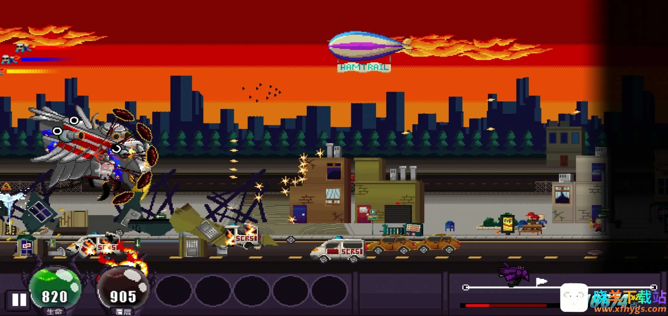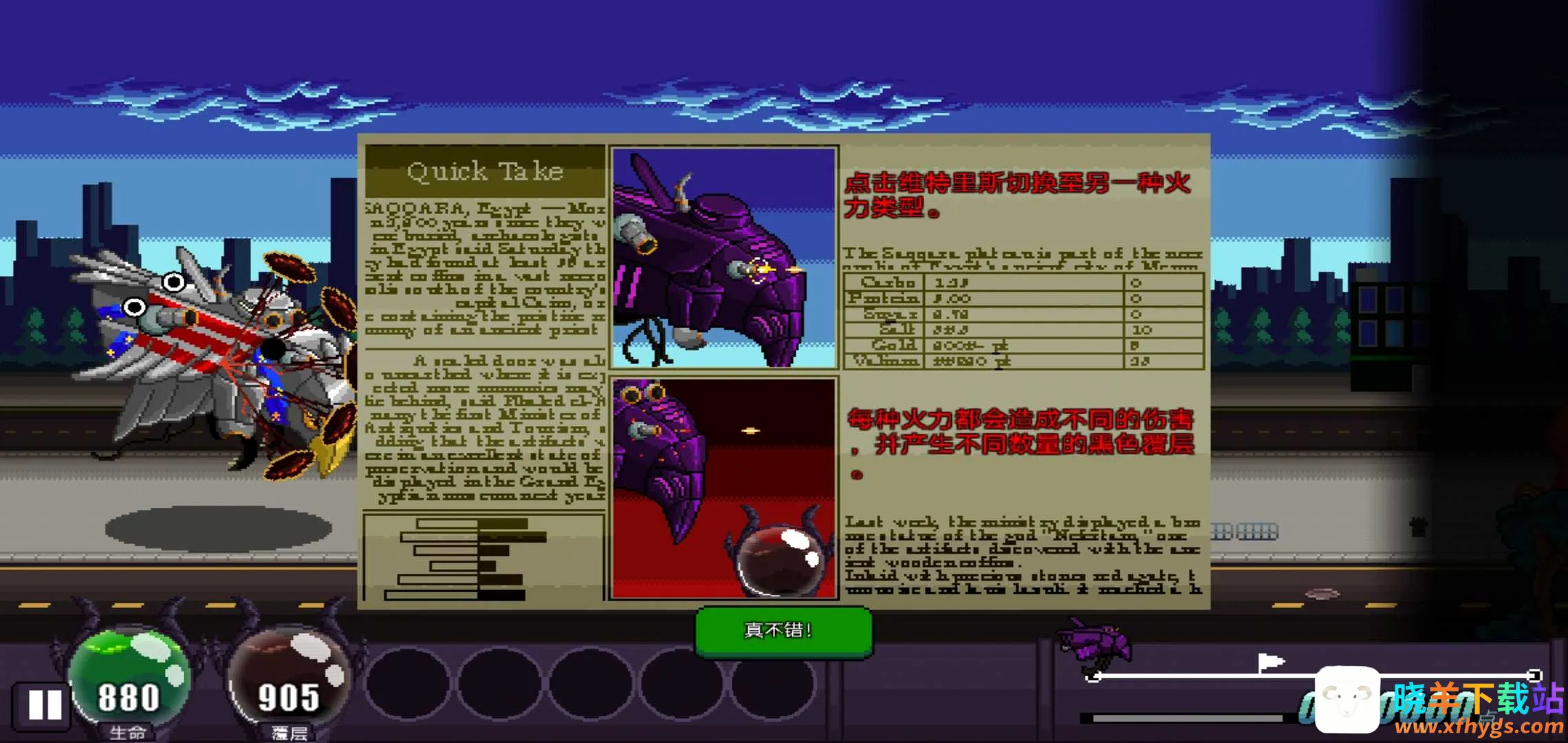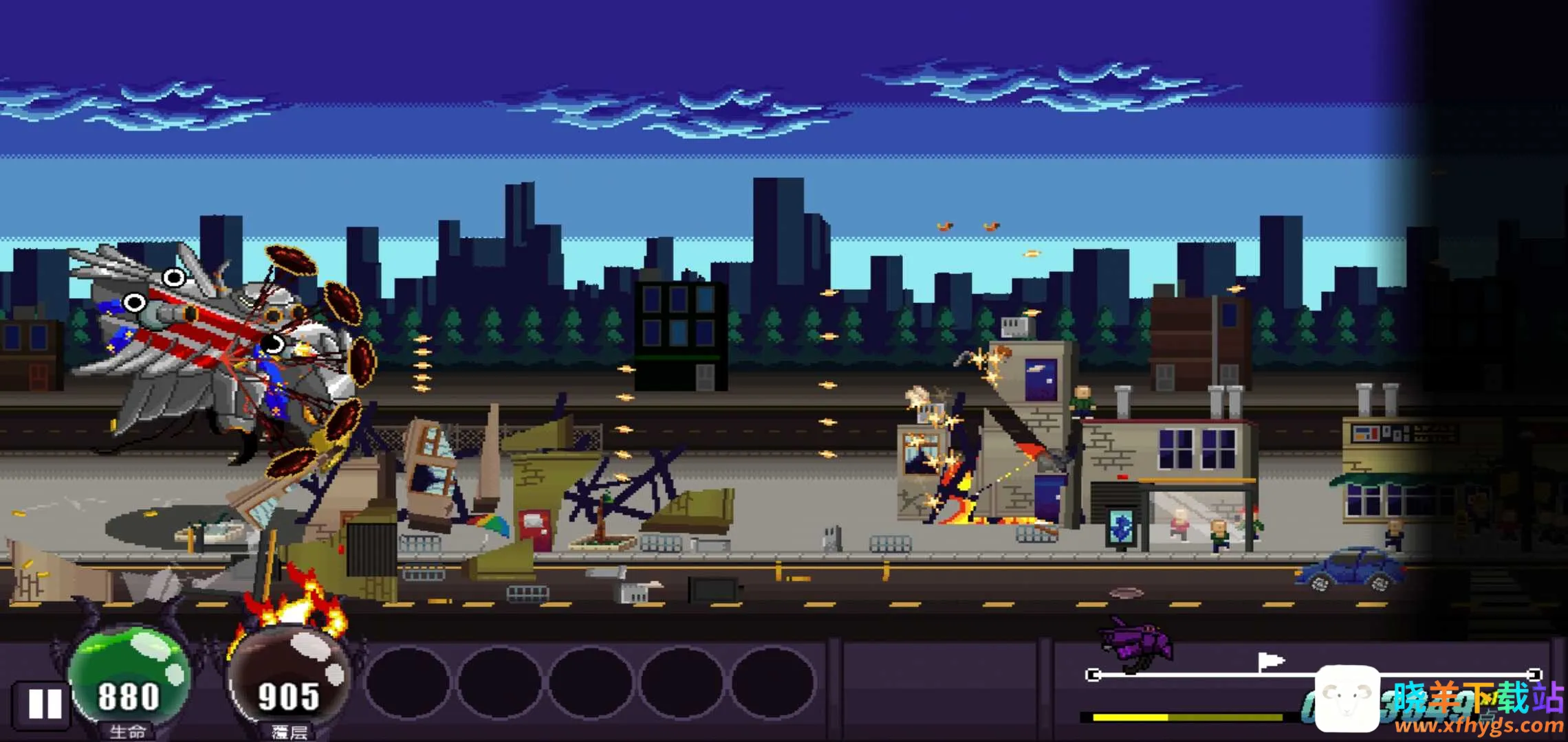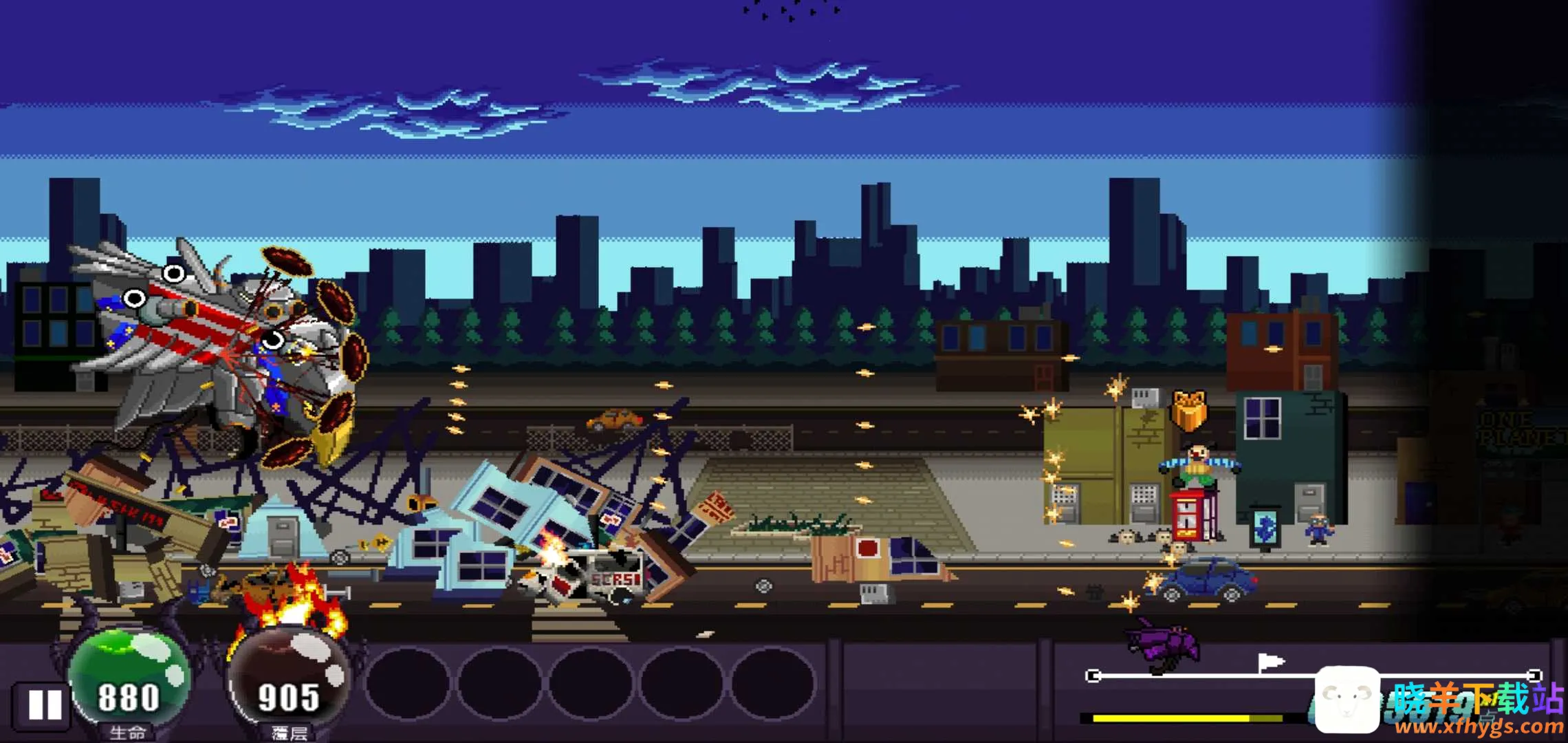 1、能开启破坏狂欢,可穿越精心设计的像素风场景,将沿途阻碍统统毁灭。