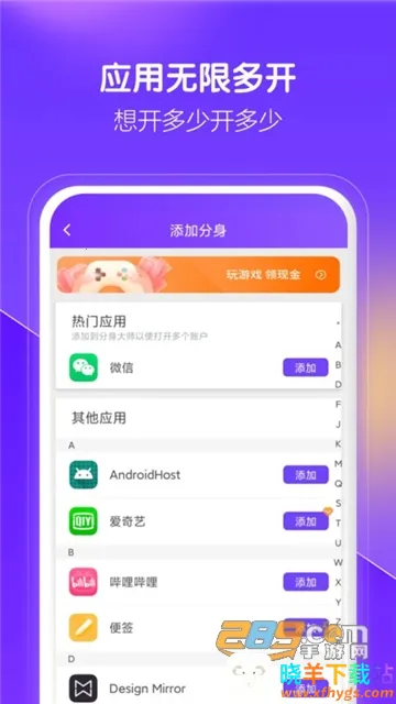 它的兼容性优秀且运行稳定,确保多个账号之间互不干扰,无论是工作还是娱乐都能顺畅进行。有了它,你能方便地管理多个账号,自由切换身份。比如工作时用一个微信账号,生活中用另一个,互不影响。而且还支持隐藏应用图标,更好地保障个人信息安全。不管是满足社交需求,还是应对游戏多开,分身大师都能轻松搞定,为你带来极大的便利,让你的手机使用更加灵活高效。