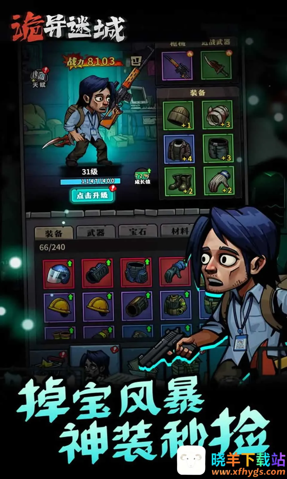 诡异迷城是竖屏横版卷轴视角放置ARPG游戏,玩家在奇幻世界冒险闯关,搭配装备道具提升角色战斗力,通过诡异能量系统创造逆转机会,还有多样怪物关卡及丰富社区互动,带来难忘放置ARPG体验