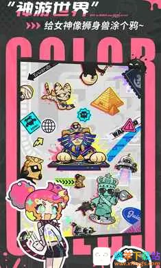 乱涂彩世界是一款潮酷无厘头的美少女弹幕射击染色冒险游戏。能让人轻松解压,单手操作也能感受染色快感。可招募神明环游世界触发神奇事件,有无厘头漫画剧情,热梗连击,充满欢乐。