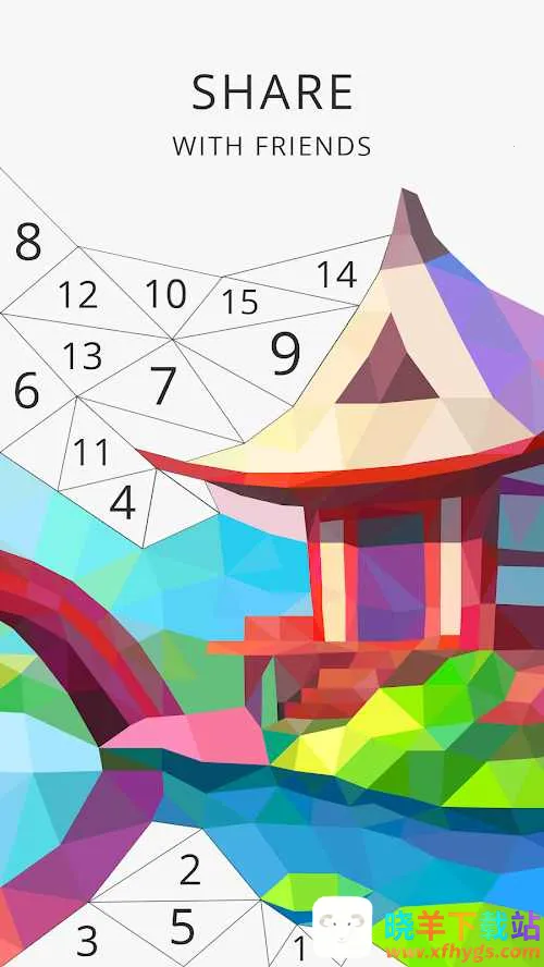 2. 独特匹配玩法:将彩色多边形与数字区域进行匹配,从而得到呼之欲出的精美多边形画作,玩法新颖有趣。